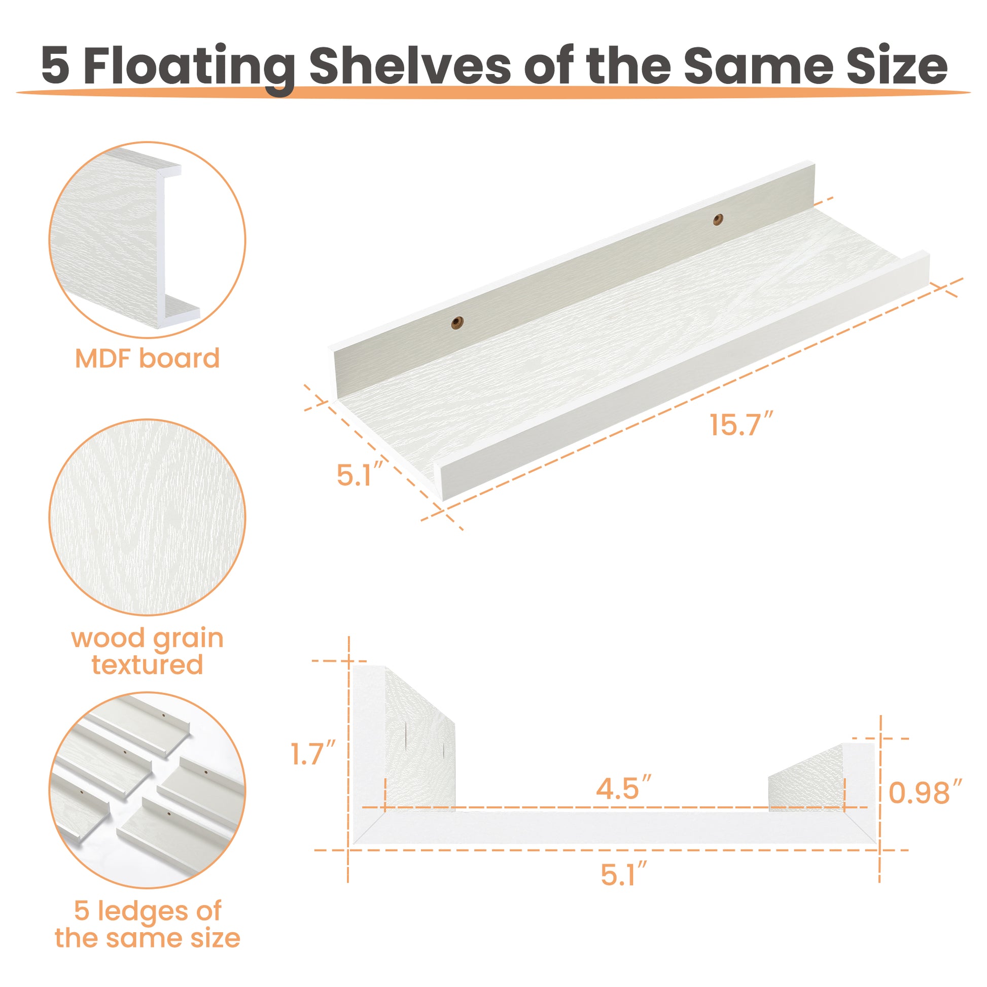 Floating Shelves, Sindcom Home Wood Shelf Wall Mounted, Set of 5, White