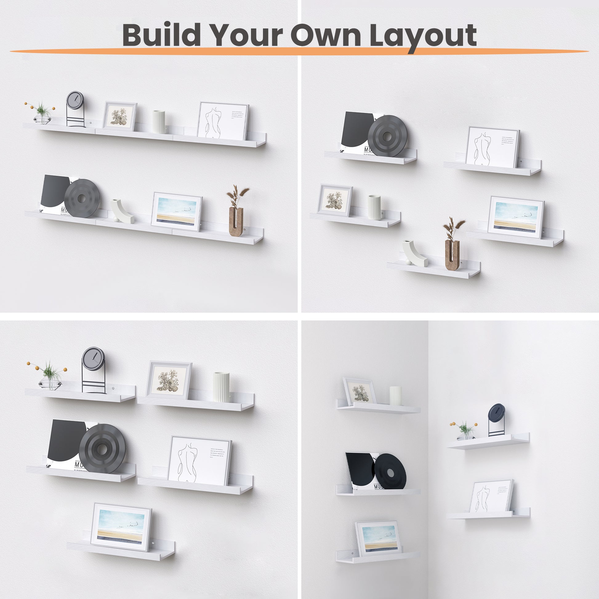 Value for Money - The 5pack wall shelves not only can be assembled into a long shelf measuring up to 31 inches for wall display, but also can be placed individually in every corner, organizing your small items at any time.
